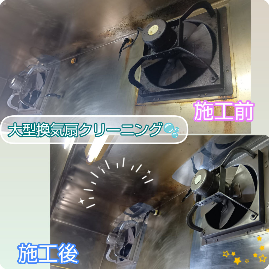 今回は、店舗用大型換気扇のクリーニング作業をさせていただきました✨