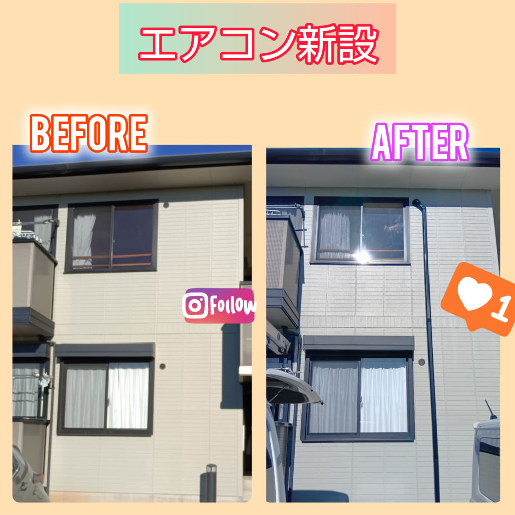 今回は、2階のお部屋へのエアコン新設工事を行いました❄️